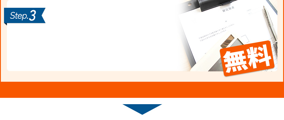 ※ お見積りまで、料金は一切かかりませんので、ご安心くださいませ。