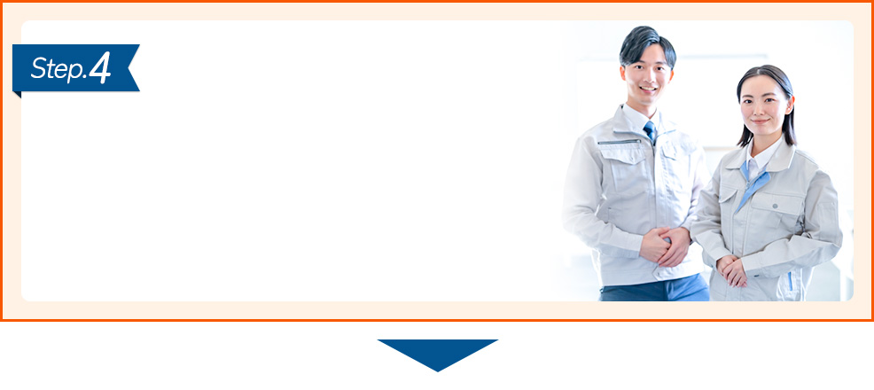 お見積りをご確認頂きまして、ご納得いただきましたら、作業へと入らせていただきます。作業をスタートしまして、初めて料金が発生いたします。