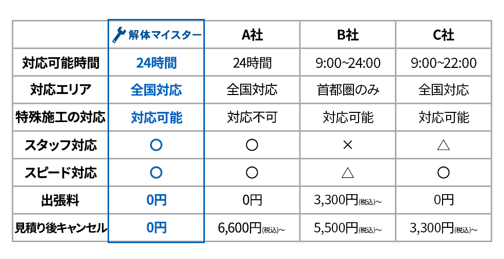夜間や繁忙期・当社の出勤人数などの関係で素早い対応ができない場合は他の業者をご紹介できます。